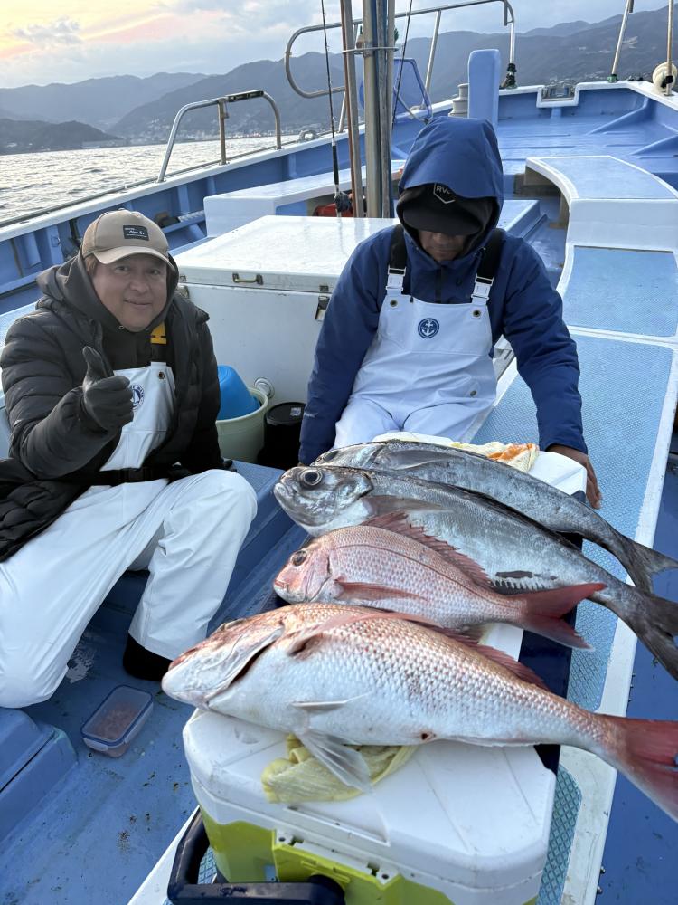 みなさま初挑戦ながらも1日頑張っていただきキンメ、クロムツと顔見れ中盤まで当たりこそ途切れることなくありましたが巻き上げ途中の針ハズレが多く苦戦しましたね〜。巻き上げタイミングの見極め次第ではもうひと伸び、ふた伸びありそうな雰囲気!