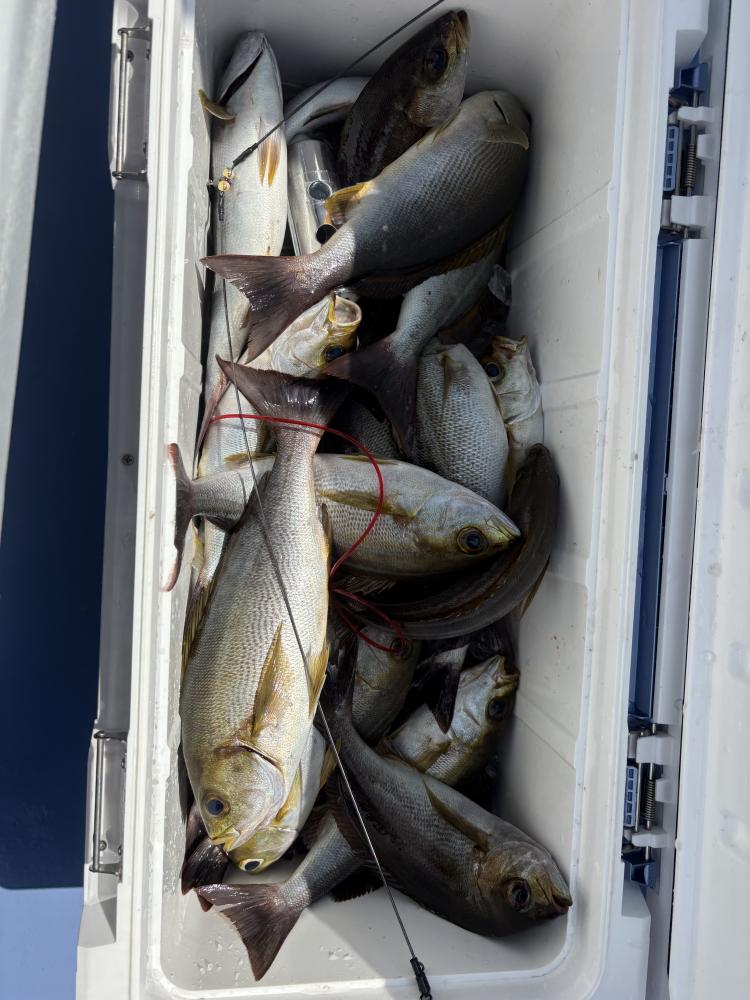 この暗黒の潮がきてから早いこと3週間…なかなか潮が変わってくれずマダイも本来の住処を見失ってる様子〜。その代わりにアジやクロムツなどのあたりはおおくお土産分にはここ数日困らない状況です!