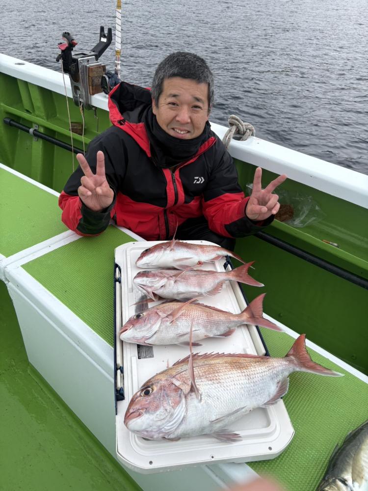 明日は雪予報のため全船出船中止ですが〜2/9(月)2/10(火)と連日マダイ五目船は出船確定!
