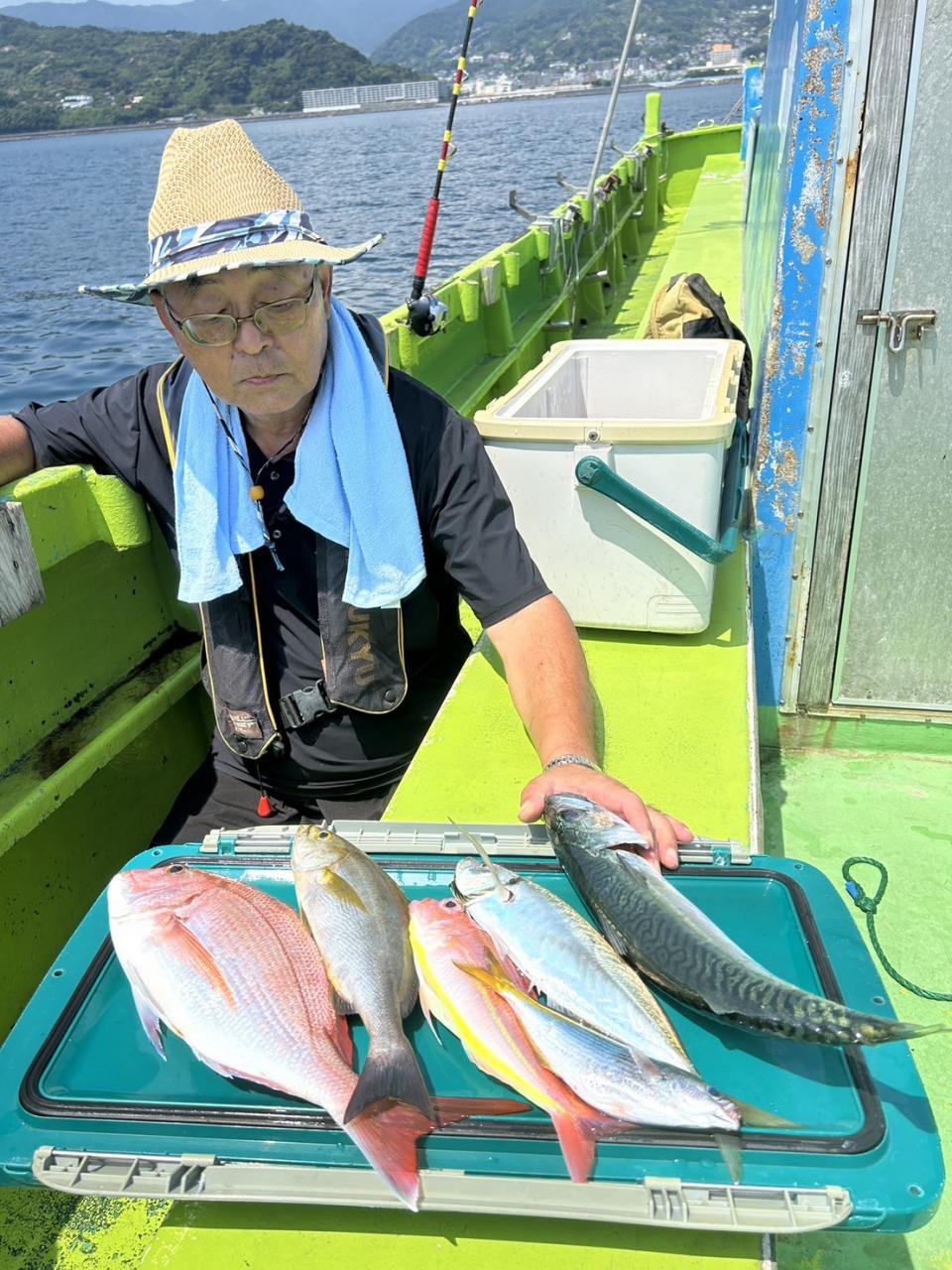 釣果 マダイ、イサキトップ6匹、アジトップ3匹、タカベ、イトヨリ、サバ